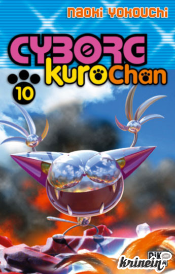 Cyborg KurochanArg... J'aurais pas dû manger au resto U hier, ça ne passe pas. Tout comme Kurochan d'ailleurs. D'habitude je suis plutôt réceptif à ce genre de mangas mais ici, la sauce ne prend pas pour plusieurs raisons. Commençons par le graphisme. Assez proche de dessins animés type Super-nanas ou du Professeur Dexter, Cyborg Kurochan est franchement moche et volontairement enfantin tout en exagérant les stéréotypes manga. Ce ne serait pas trop grave s'il n'était pas victime d'un autre problème : les dessins sont très fouillis pour accentuer le côté barré de l'histoire. Le tout donne donc un bordel pas possible que ma nièce aurait aussi bien pu dessiner en cours primaire. Ce n'est pas juste de la fainéantise mais un manque complet de talent. On le retrouve d'ailleurs dans les textes qui sont aussi pitoyables que les tentatives d'humour de l'auteur. J'étais censé rigoler et ce manga a plutôt facilité mon transit intestinal. J'ai bien esquissé quelques sourires de temps en temps mais on est très loin de crises de rire que provoque l'apparition du panda dans Ranma 1/2. Le fait que le manga verse dans l'auto parodie à outrance avec les gros robots et les figures déformées finit par lui nuire et paradoxalement lui enlever toute originalité.